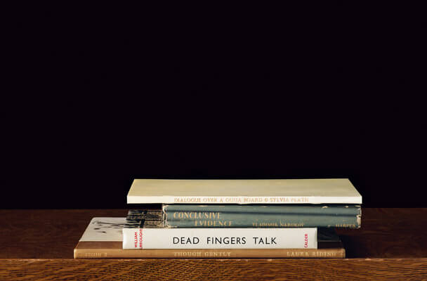 Dialogue over a Ouija Board from the series Look Who’s Talking, 2022, from the project “Sorted Books,” 1993 and ongoing. Digital chromogenic prints, 15 × 12 1⁄2 inches.