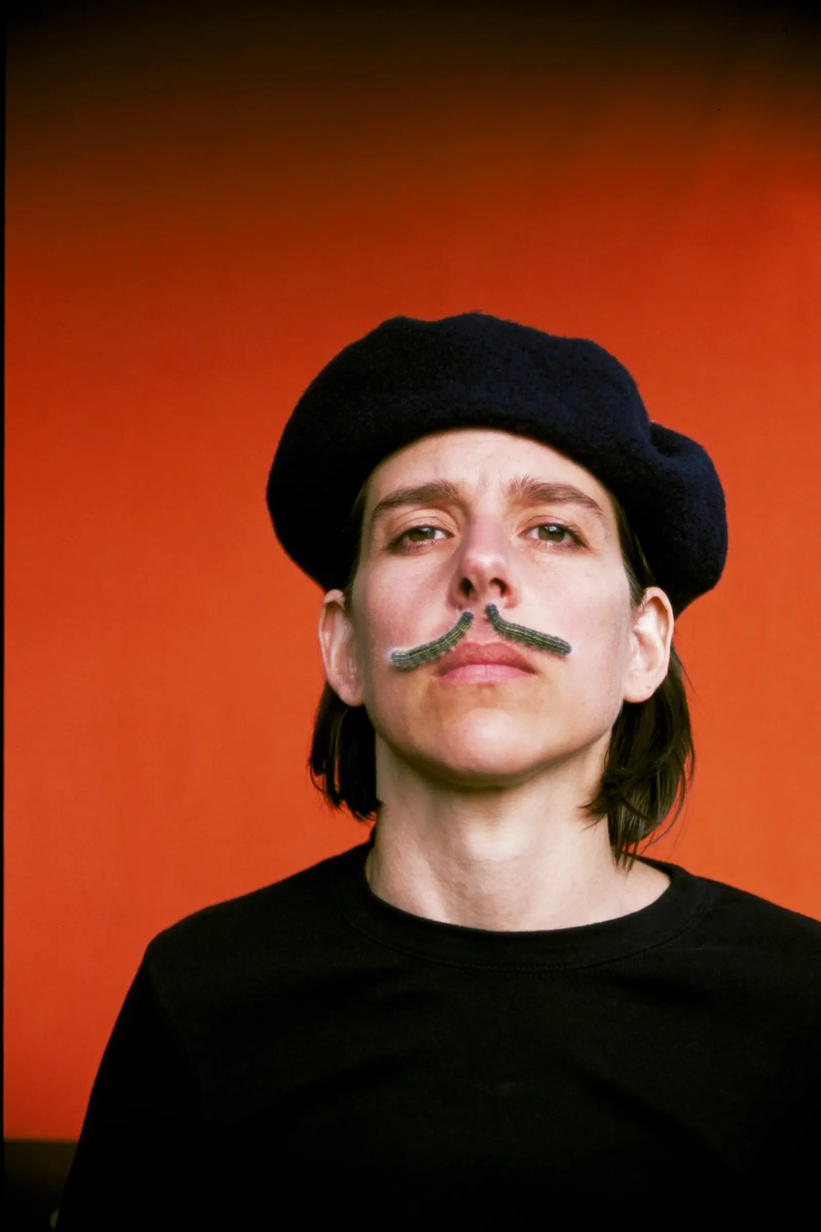 One summer, I watched a group of caterpillar eating a birch tree right outside my door. I thought a pair of them would make a perfect mustache. It was a difficult photo shoot, since the caterpillars kept trying to crawl up my nose and also had trouble sticking to my face. Applying honey to my upper lip (my mother's suggestion) helped slow them down a great deal. Crossdressing, often seen as "unnatural," transpires here using entirely natural materials.